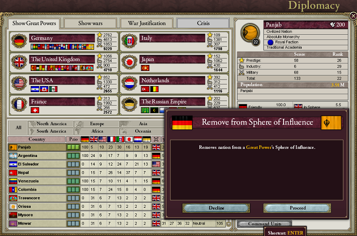 パンジャブがCivilized Nationになってる。イギリス相手の戦力になるかは微妙だけど、いい感じだね。