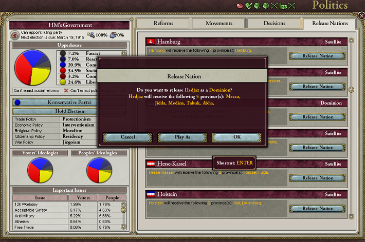 それは面白いかもしれないねえ。イギリスのしょうもない島にドイツのコアプロビがあるし、やりたければすぐにでも戦争を吹っ掛けることはできる。
