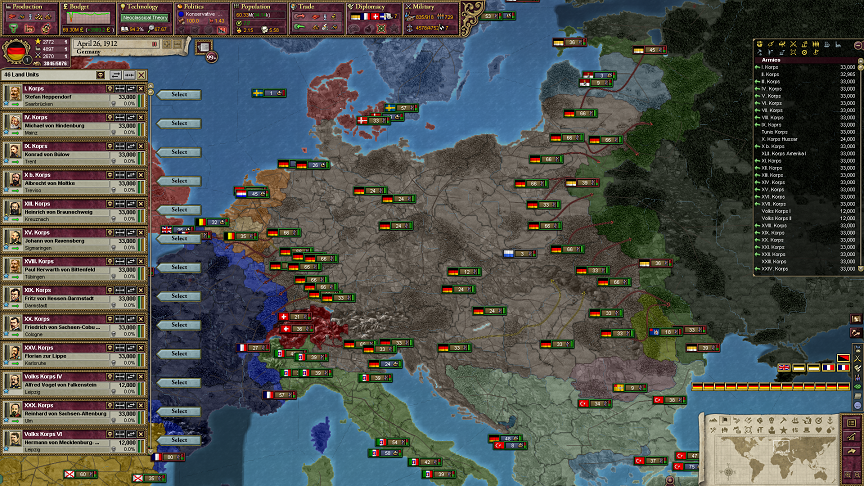 財政で予算もマックスにしたし。ドイツ軍は準備完了。それにしても、ドイツ領内にある湖みたいな国、なんとかできないのかな~。目障りすぎる。