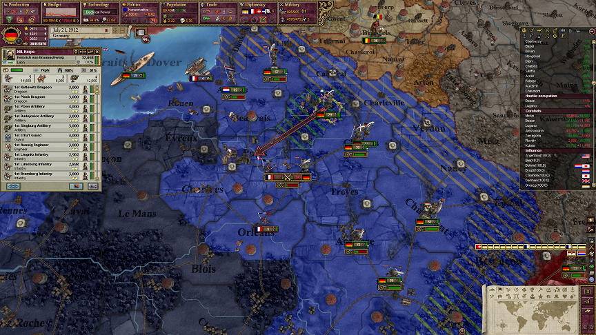 よく考えてみると、フランスって全面包囲で攻撃されるんだね。ムリゲーだわ。