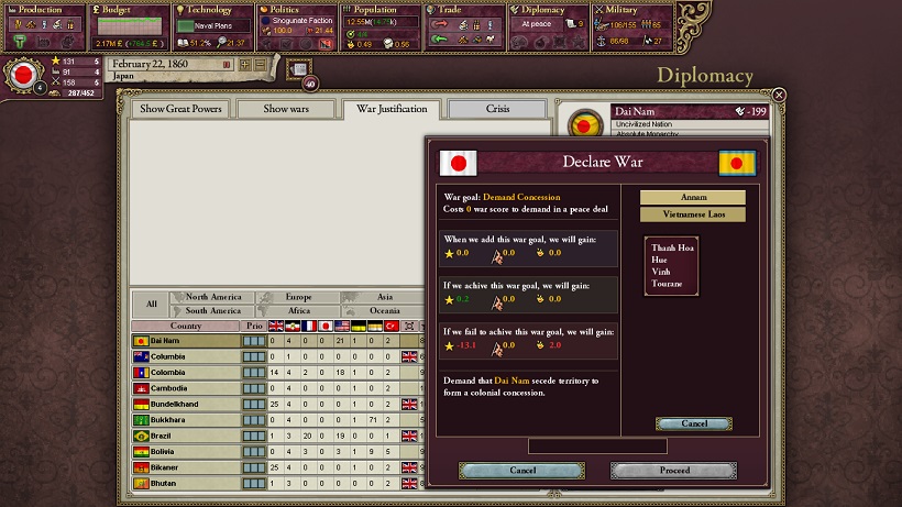 1860年2月、わが国はダイナムに対して、まずアンナンの割譲を要求し、宣戦布告します。