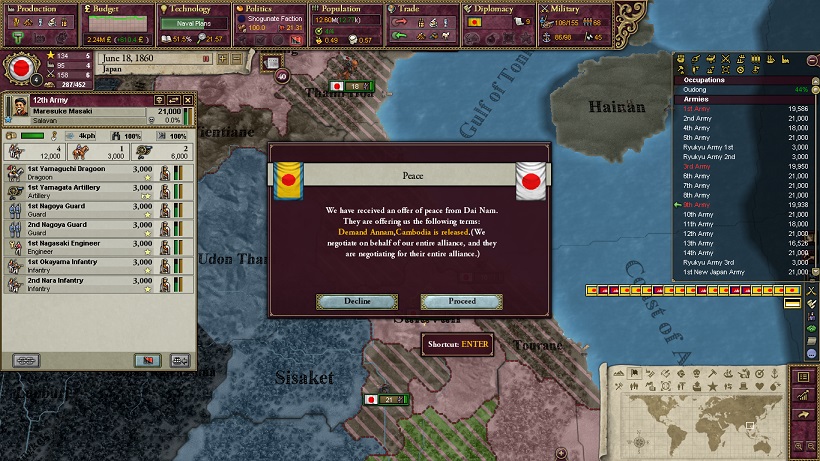 ダイナムは主力軍を南下させますが、カンボジアの防衛は諦めているようで、アンナン狭窄部における防衛を意図しているようです。