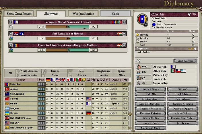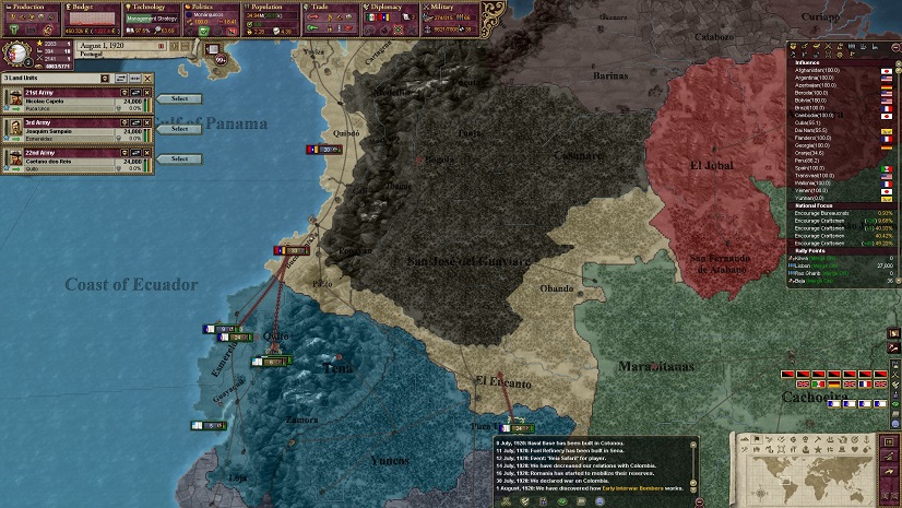 将軍「政府も総省もパナマ運河建設を本気で考えているらしい。コロンビアはアメリカ、イギリス、フランスがFriendlyの関係を構築してすでに40年が経過している。いまさらNeutralのポルトガルがコロンビアをめぐる外交戦争にしゃしゃり出ても無理というのはわかる…」
