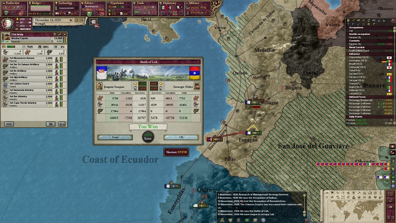 シロツグ「コロンビア陸軍のほとんどが無力化されました。残存戦力は1個軍団程度です」