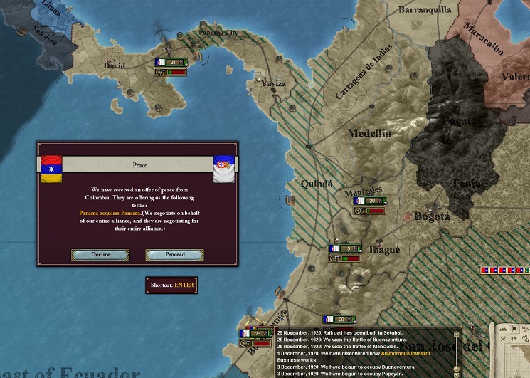シロツグ「コロンビア政府からパナマ独立を承認することで和平したいと提案してきました!」
