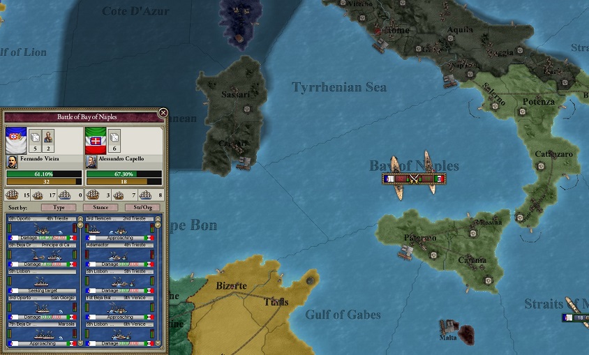 シロツグ「地中海ナポリ沖でイタリア海軍とわが海軍が会敵。交戦しています」