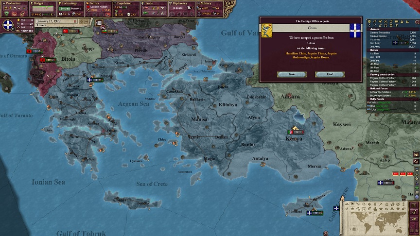 オスマントルコ軍の残存戦力を掃討していく…が、どうも南からイタリア軍が北上してきているようだ。
