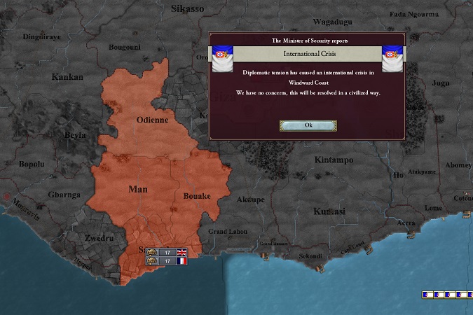 シロツグ「あ! フランスはイギリスにWindward Coastの権利放棄と謝罪を提案、イギリスはこれを受け入れてこの危機は終結しました…」