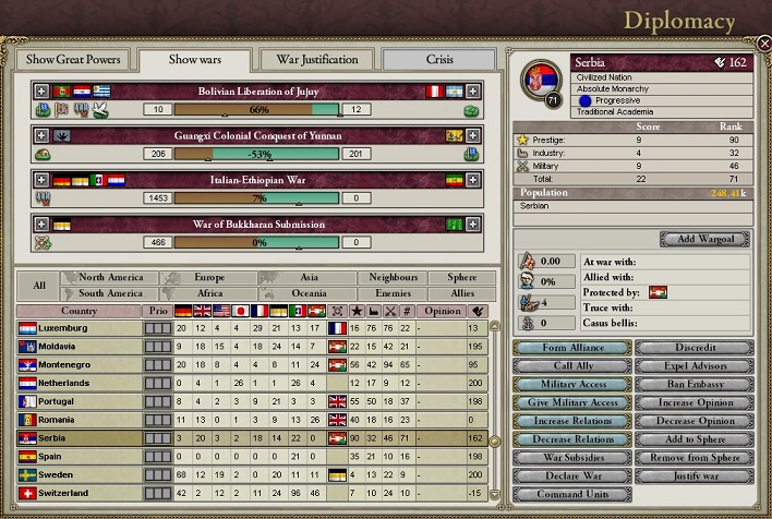 オーストリア=ハンガリー側にイギリスが参加、ルーマニアをドイツが支持し、イタリアが参加。