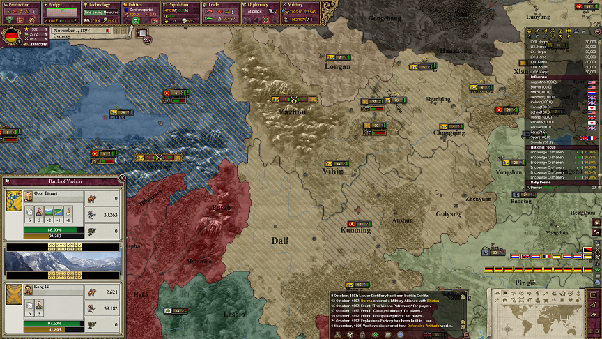 ユンナン、チベット方面に占領しに行ったのがよくなかったんだな。本土で中国を迎え撃てばなんとかなったかもしれない。