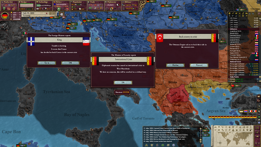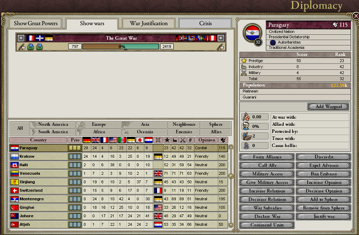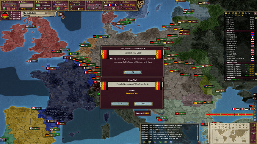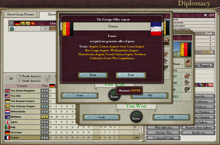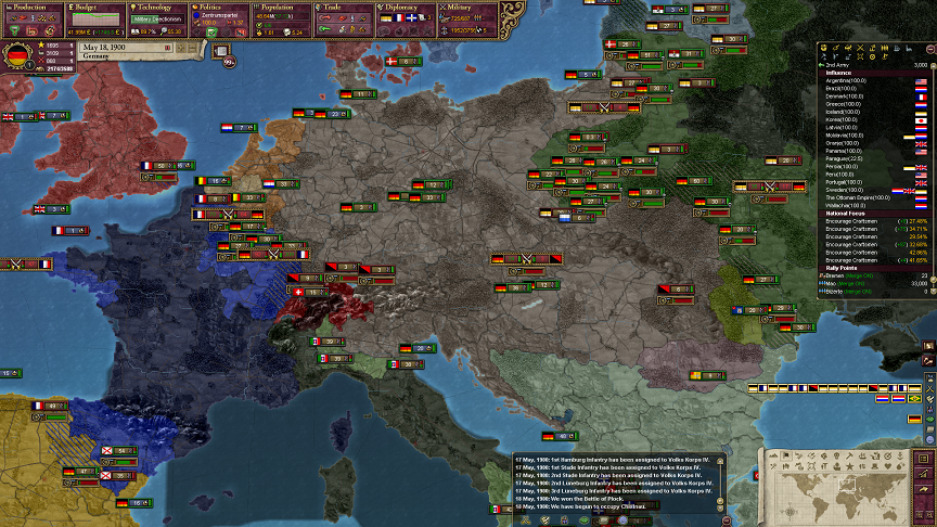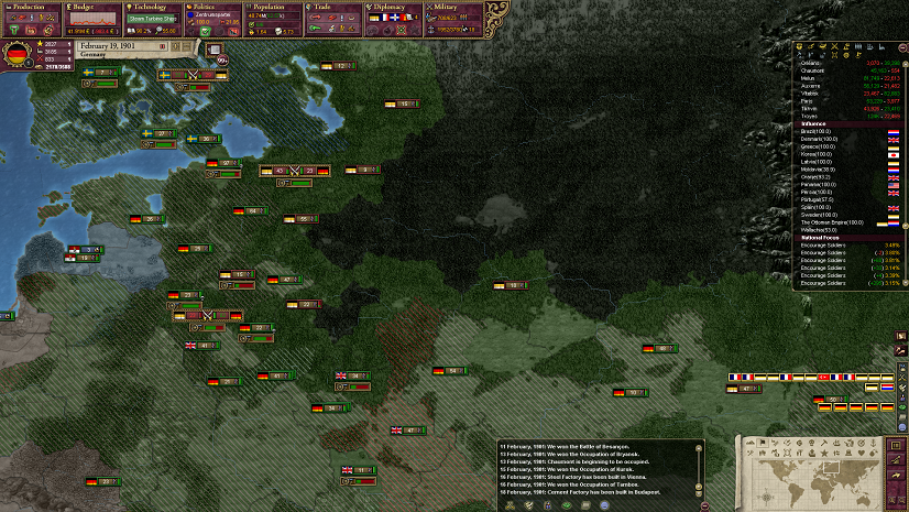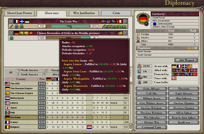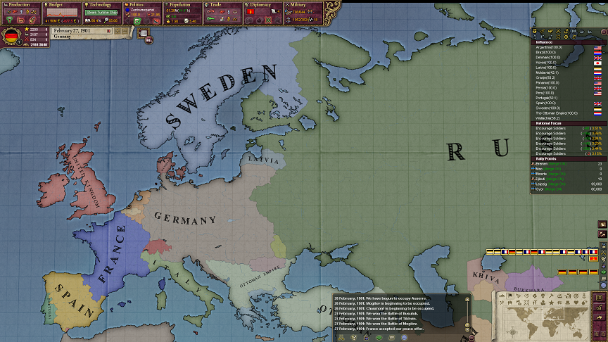 まぁ、次もあるだろうし。1905年以降はWorldWarが発明されるから、WarGoalに必要なWarScoreが30%になるんだ。楽しみだねー??
