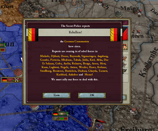 アフリカの植民地軍に余裕があるから、アフリカのほうは植民地軍で制圧できそう。