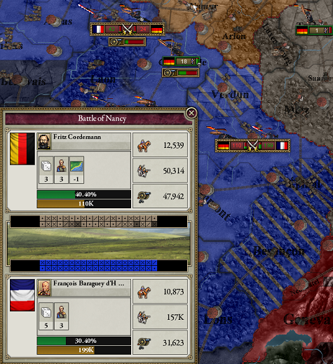 ドイツ軍は戦力を逐次投入・引き抜きしているけど、フランス軍は撤退しないねー。大消耗戦だ。