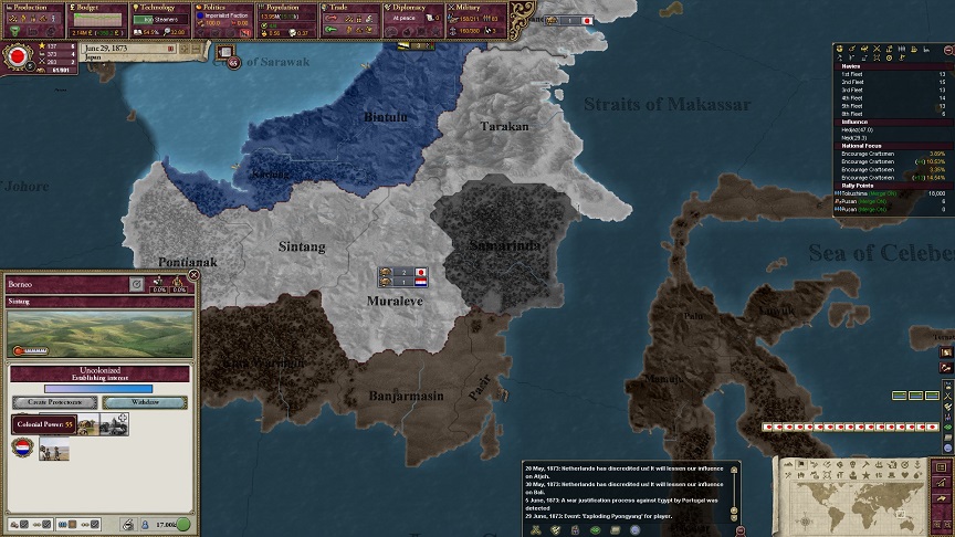 ボルネオ島でオランダと争いにならないか不安ですが…入植可能なステートにはほぼ入植できたかと思います。