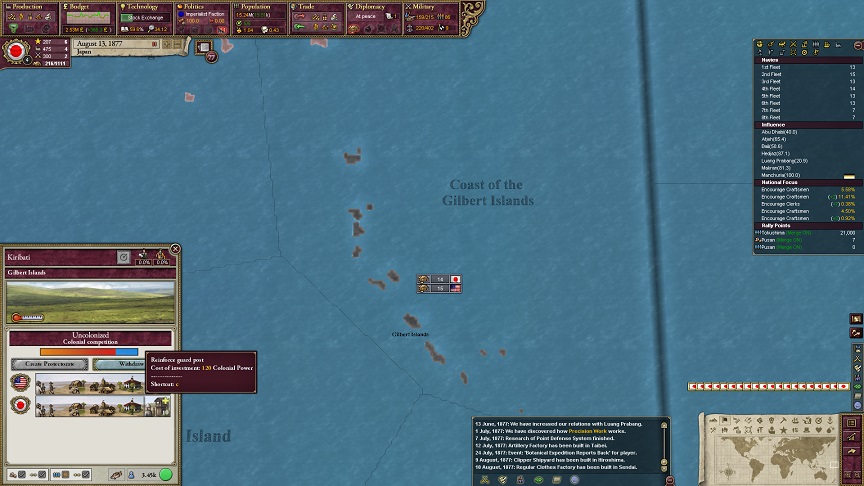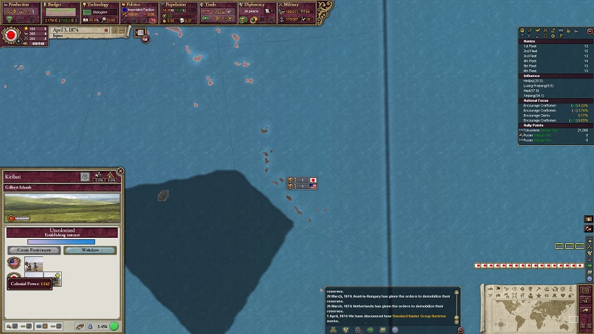ザビエル「キリバスは十分に米帝の南太平洋進出を食い止める防波堤となってくれました。残っている植民可能な島はイースター島だけでソが、米帝は到達可能ではないし、こちらの軍港建設が先行しています。頃合いでしょう」