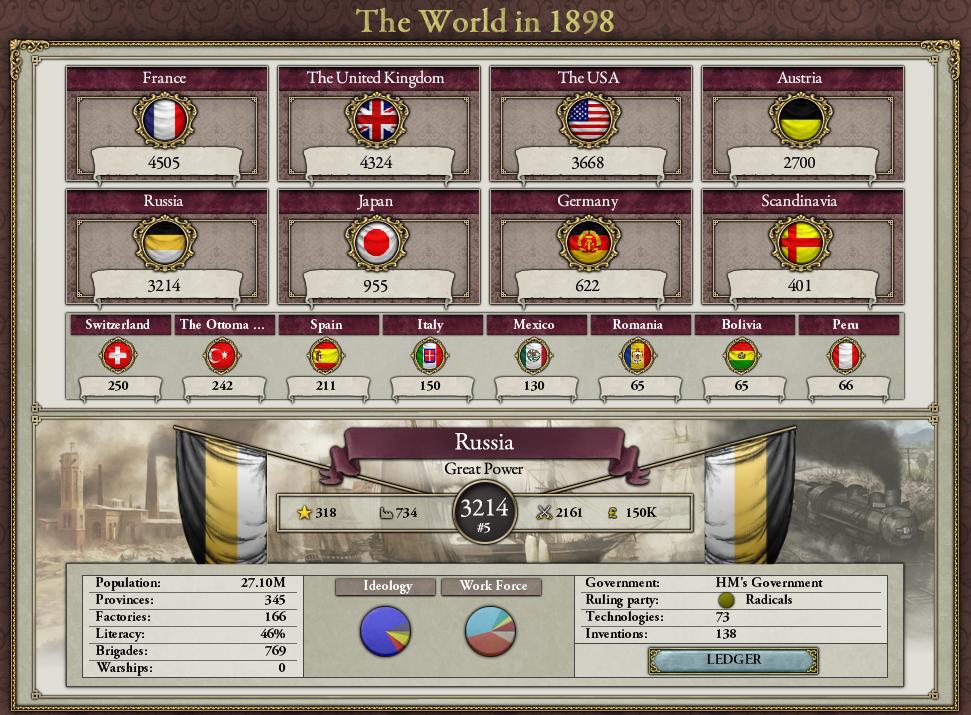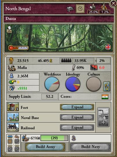 陸の帝国(笑)と言われない様、NFを兵士POPに当てて動員込みでイギリスと同クラスの師団数まで肉薄したが