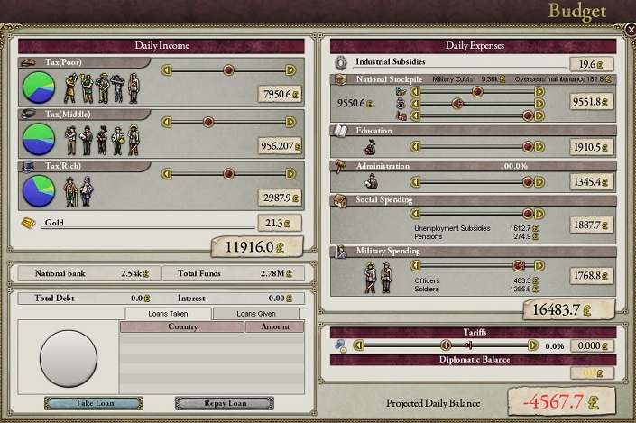 シロツグ「進めていますが、もうNSPに余地がなくなってきているのと、海軍支出100%にしただけで毎日の収支が-10000にもなるので限界です」