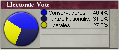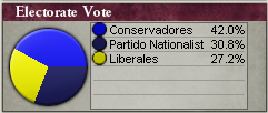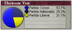 1月1日からの6か月間の選挙戦が7月1日に終了し、保守派・国粋主義党の連合が勝利し、首班は保守派から指名されました。上院は保守主義者が100%を占めています。下院では、保守派が40.4%、国粋主義党が31.9%、自由主義派が27.8%となっています。
