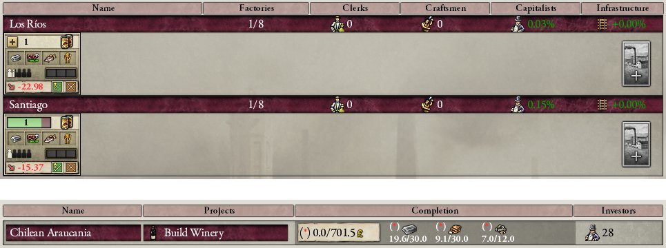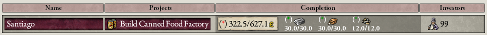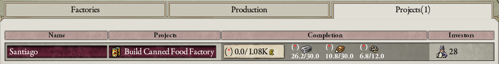 マダガスカルとの戦争中だったので報告が遅れていましたが、サンティアゴ州の缶詰工場の建設が完了していました。あとは資金が集まれば操業を開始できます。