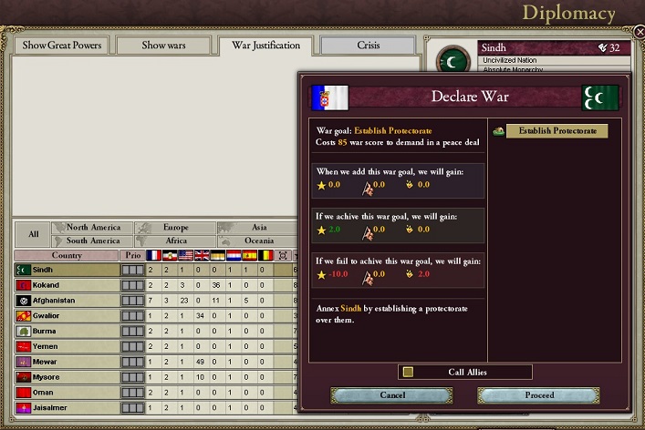 将軍「どうせ戦争をするならばもっと切り取っておきたい。Sindhの後にKalatの併合をJustifyWarしておく」